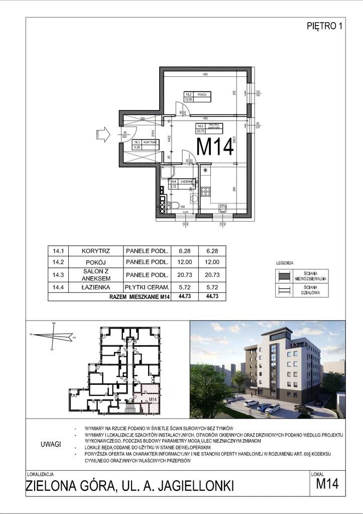 Lokal o powierzchni 44,73 m2, znajduje się na 1 piętrze w nowoczesnym budynku wielorodzinnym, którego odbiór planowany jest na III kwartał 2025r.
